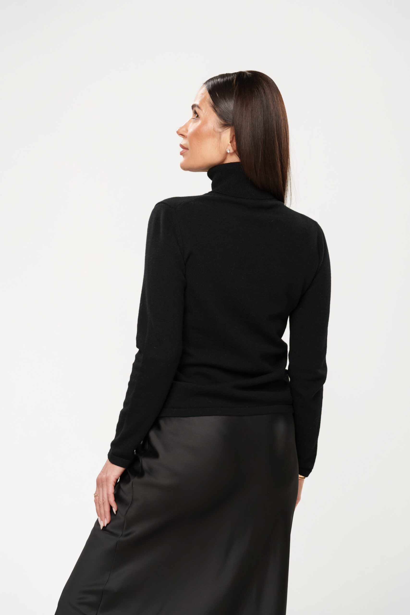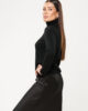 Megztinio modelis – aukštu kaklu, plono mezgimo.